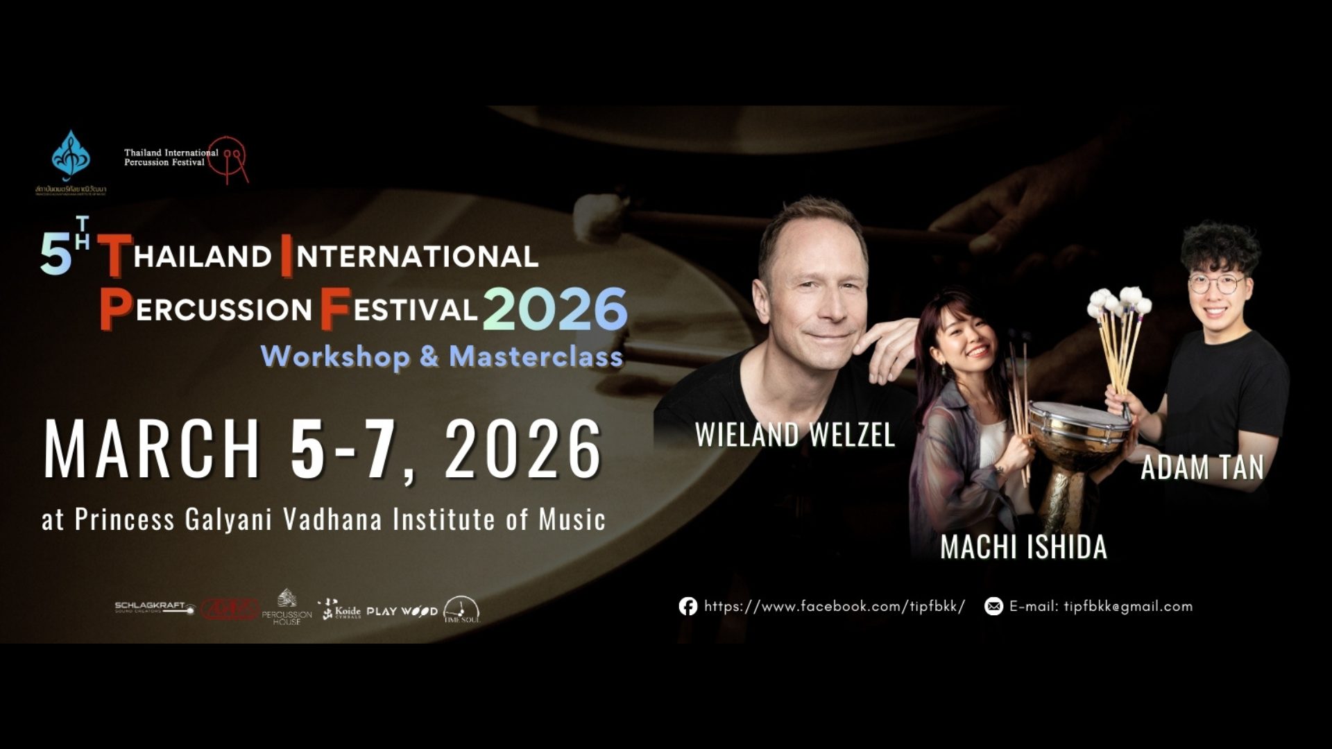 Thailand International Percussion Festival ครั้งที่ 5 เปิดลงทะเบียนแล้ว! 3 วันเต็มของชาว Percussion!!! เตรียมยกระดับทักษะ เปิดมุมมอง & เทคนิคใหม่ และได้ใกล้ชิดศิลปินระดับโลกแบบตัวจริงเสียงจริง