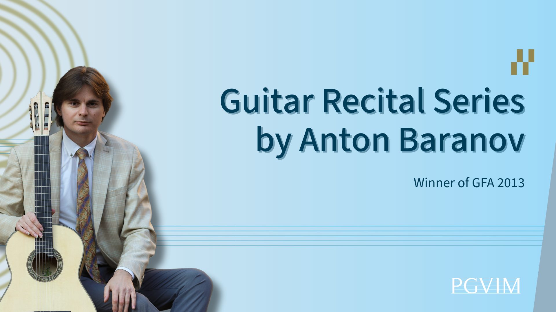 ขอเชิญทุกท่านร่วมชมการแสดงบทเพลงกีตาร์คลาสสิกใน Guitar Recital Series by Anton Baranov นักกีตาร์ระดับนานาชาติจากรัสเซีย ผู้ชนะเลิศ Guitar Foundation of America (GFA) ปี 2013 และได้รับรางวัลจากเวทีระดับโลกมากมาย!!