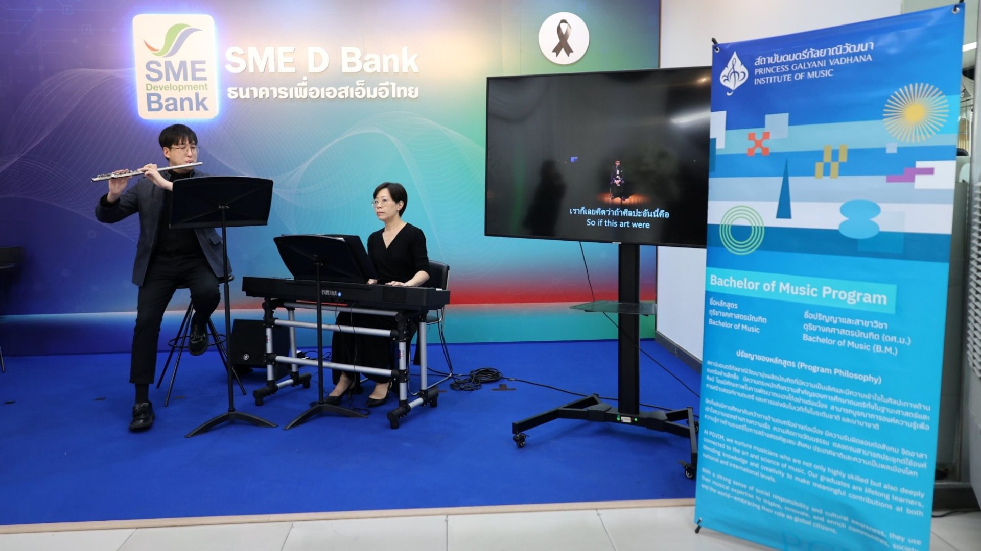 PGVIM), through its Division of Academic Service to Society, brought together a team of expert faculty members to present a classical music performance that enhanced the aesthetic atmosphere of the 23rd Anniversary Celebration, marking the Bank’s transition into its 24th year, of the Small and Medium Enterprise Development Bank of Thailand (SME D Bank).The event was held at SME Bank Tower, Phahonyothin Road, and was honored by the presence of more than 300 distinguished guests, including senior executives, representatives from government agencies, and business partners.